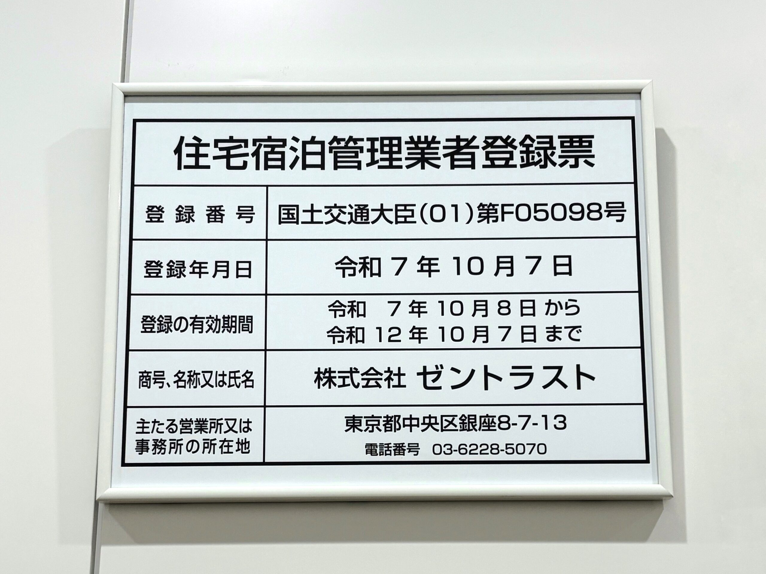 弊社はこの登録を完了し、法令順守のもと、民泊物件の適正な管理を行う責任ある立場として業務を遂行してまいります。