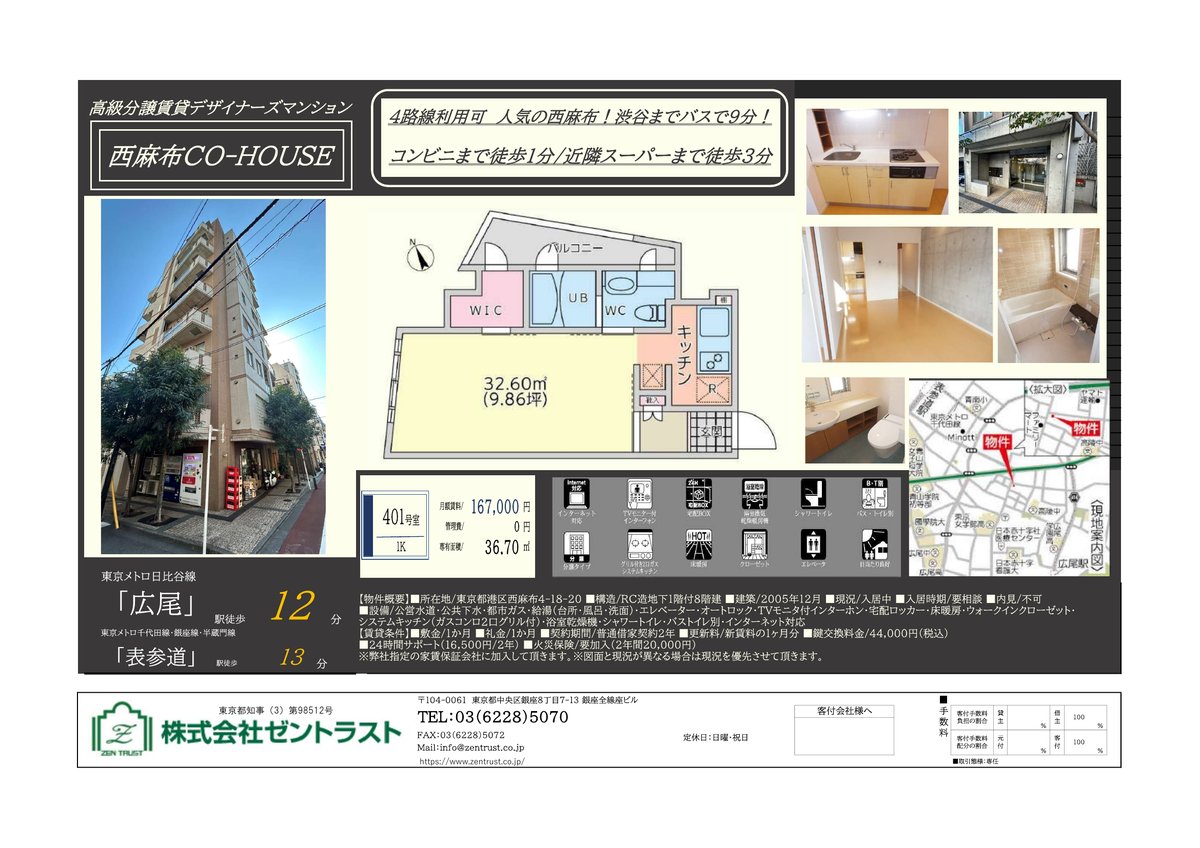 ■交通/東京メトロ日比谷線「広尾」駅徒歩12分